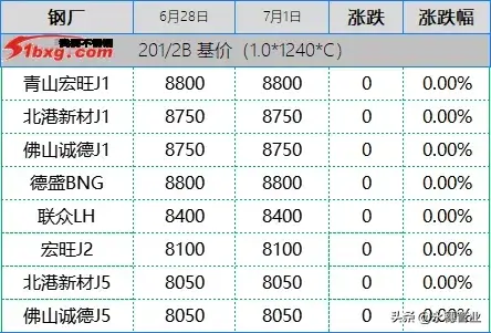 今日,青山代理報(bào)7月資源:鼎信304冷軋窄帶13200元/噸,熱軋窄帶13300元/噸;30478冷軋窄帶12700元/噸。304熱軋大板13330元/噸,30478熱軋大板12800元/噸。