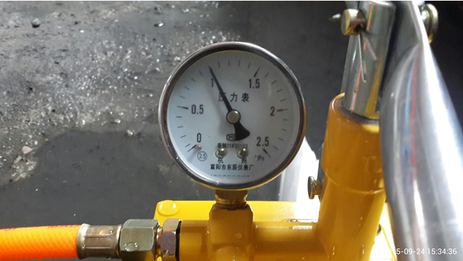 驗收技巧:水管布設(shè)好后,先關(guān)閉水表的閥門,除預(yù)留打壓口外,封堵管路各出水口。在打壓口連接打壓機器(即簡易手搖水泵),用打壓機器將水管內(nèi)水壓打到管道工作壓力的1.5倍(入戶市政自來水的一般為4~6個大氣壓,即0.4~0.6 Mpa),升壓時間不應(yīng)小于10 min,升至規(guī)定壓力后,觀查10分鐘,壓降不得超過0.02 Mpa,以所有接頭、接口無漏水為合格。